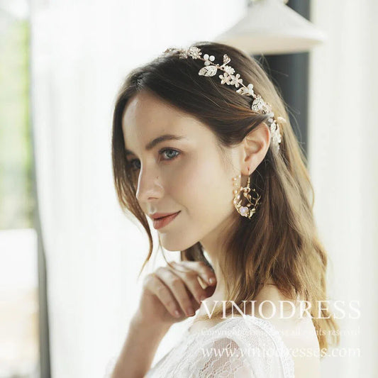 Rose Gold Leaf Bridal Headband and Earrings Set AC1057