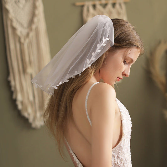 Short Bridal Veil Lacy Appliqued