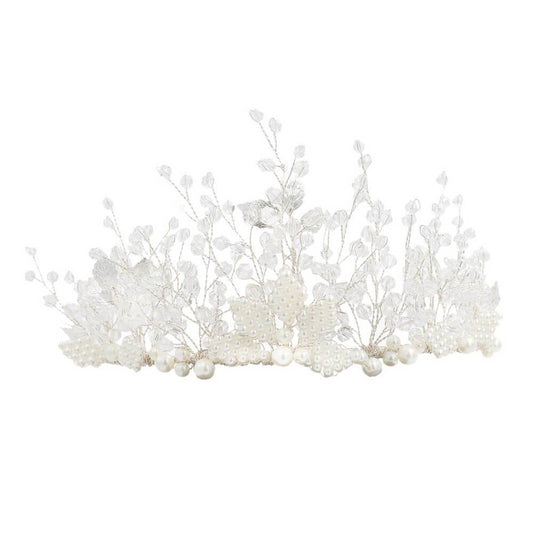 Crystal Spray Bridal Tiara Pearls Quinceanera Crown AC1092