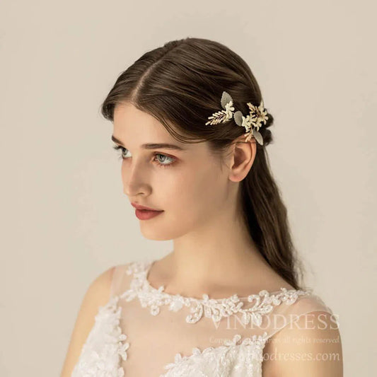 Gold Leaf and Flower Bridal Hairpins AC1112