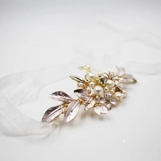 Pearl and Leaf Gold Corsage Bracelet AC1093