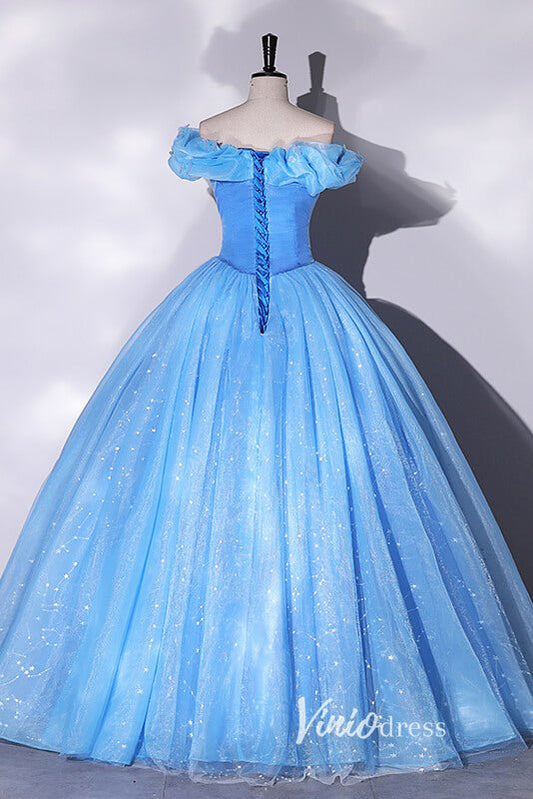 Shimmering Blue Off the Shoulder Quinceanera Dresses FD3541