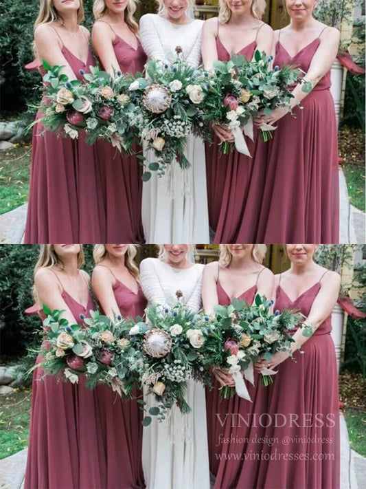 Spaghetti Strap V Neck Plumberry Bridesmaid Dresses Long VB1028