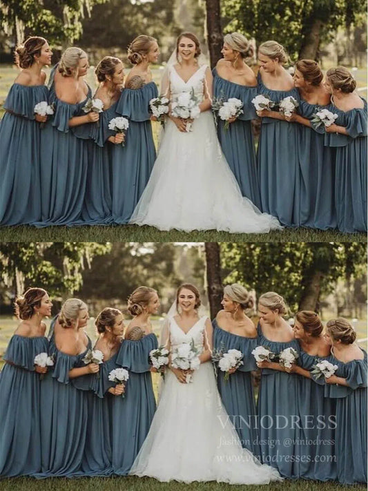 Slate Blue Long Bridesmaid Dresses Off the Shoulder VB1001