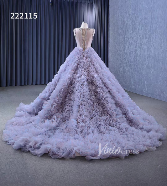 Lavender Ruffled Wedding Dress Ball Gowns with Rhinestone Bodice 222115