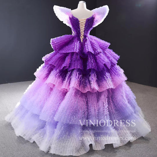 Lavender Tiered Ball Gown Formal Dresses Celebrity Red Carpet Dress FD1600 viniodress