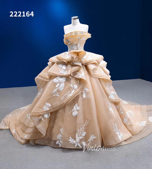 Light Gold Debut Gown Layered Princess Ball Gown Wedding Dresses 222164