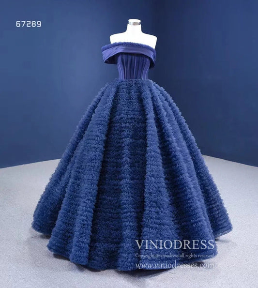 Navy Blue Ruffled Ball Gown Strapless Quinceanera Dresses 67289 viniodress