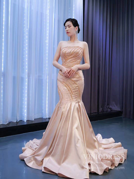 Beaded Mermaid Prom Dresses Strapless Pageant Dress 67320 viniodress