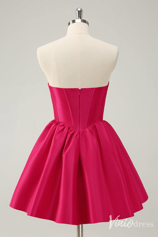 Fuchsia Sweetheart Homecoming Dresses Satin Strapless Back to School Dress S24018