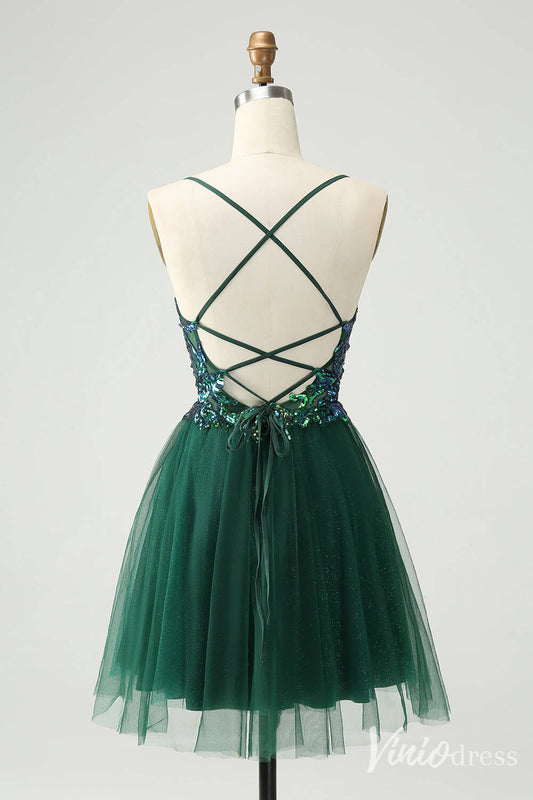 Green Sparkly Lace Sweetheart Homecoming Dresses Spaghetti Strap Back to School Dress S24020