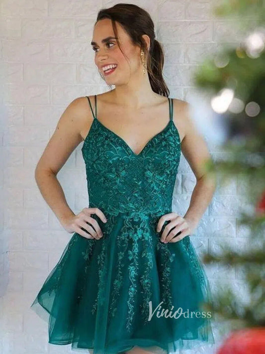 Backless Emerald Green Homecoming Dress Tulle Short Party Dress SD1091