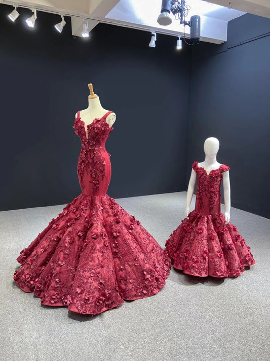 Red Mermaid Prom Dress Little Girls Pageant Dresses FD1192C