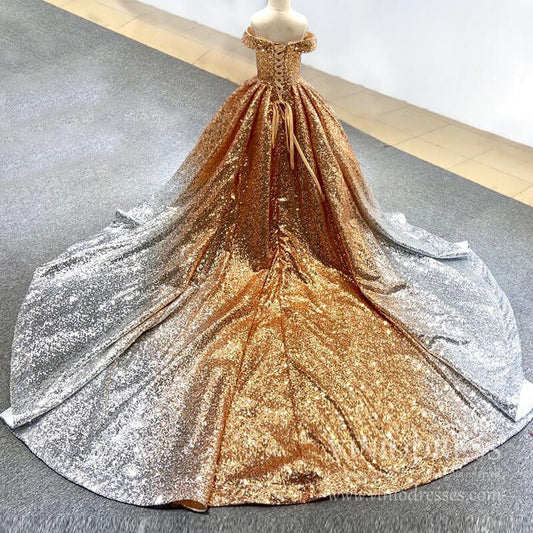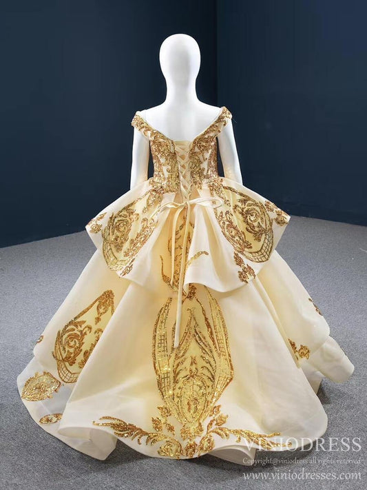 Off the Shoulder Gold Sequin Ball Gown for Child FD1959K