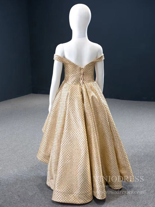 Off the Shoulder Gold Prom Dress for Little Girls FD1087C