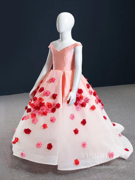 Pink Floral Ball Gown For Little Girls Pageant Dresses FD1142C