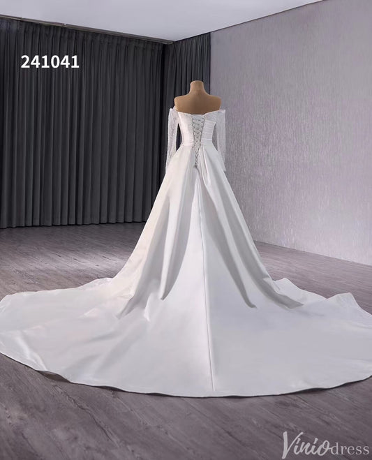 Ivory Beaded Mermaid Wedding Gown Sheer Off the Shoulder Bridal Dress 241044
