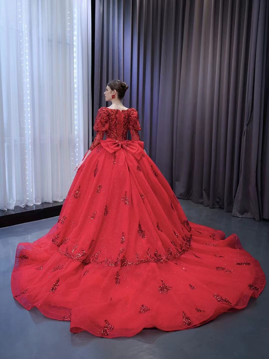 Vintage Luxury Red Wedding Dresses Sparkly Long Sleeve Ball Gown 231134