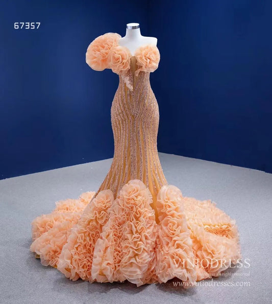 Beaded Gold Pageant Dress Mermaid Wedding Dress 67242 Viniodress