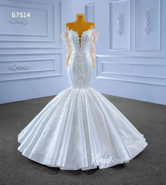 Vintage Lace Appliqued Mermaid Wedding Dresses with Long Sleeves 67514