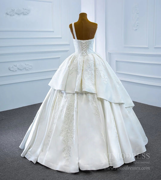One Shoulder Wedding Gowns Lace Appliqued Satin Wedding Dresses 67207