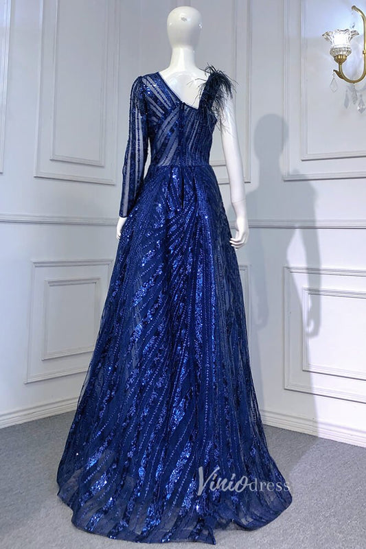 Royal Blue Beaded Evening Dresses One Shoulder Prom Dress FD3019
