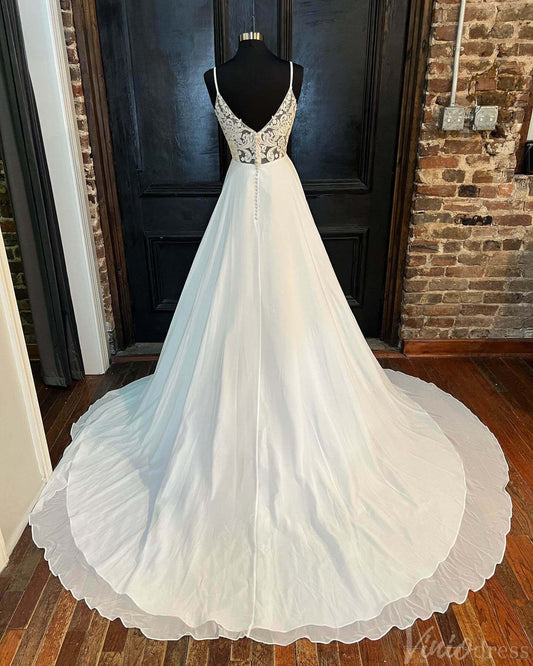 Ivory Spaghetti Strap V-Neck Wedding Dresses Chiffon Country Bridal Gown VW2161