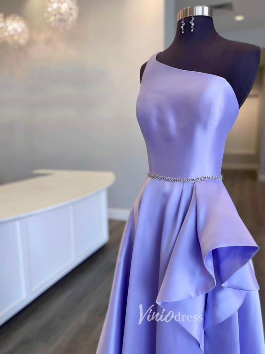 Lavender Satin Prom Dresses One Shoulder Formal Gown fd2716