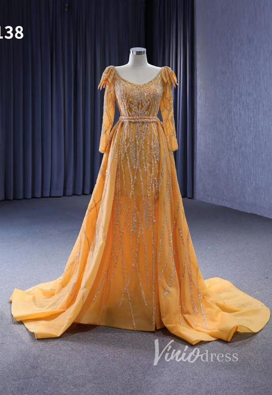 Long Sleeve Gold Wedding Dresses Removable Overskirt Pageant Dress 222138