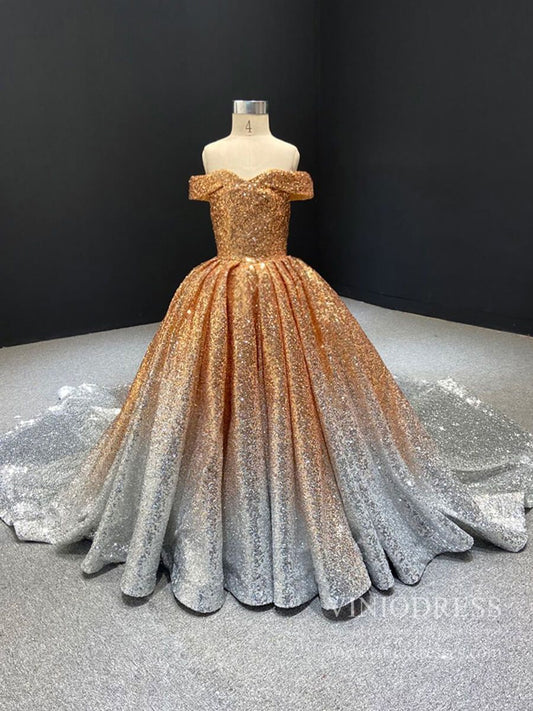 Off the Shoulder Gold Sequin Ball Gown for Child FD1959K