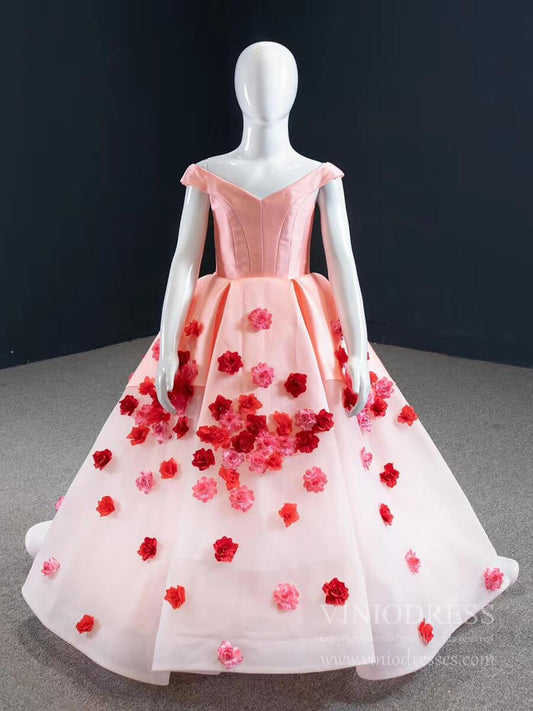 Pink Floral Ball Gown For Little Girls Pageant Dresses FD1142C