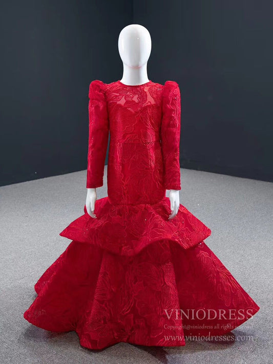 Red Mermaid Prom Dress Little Girls Pageant Dresses FD1192C