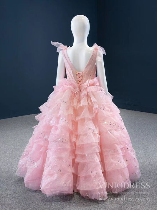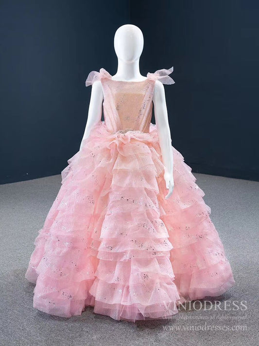 Sparkly Pink Tiered Pageant Gown for Little Girls FD2141C