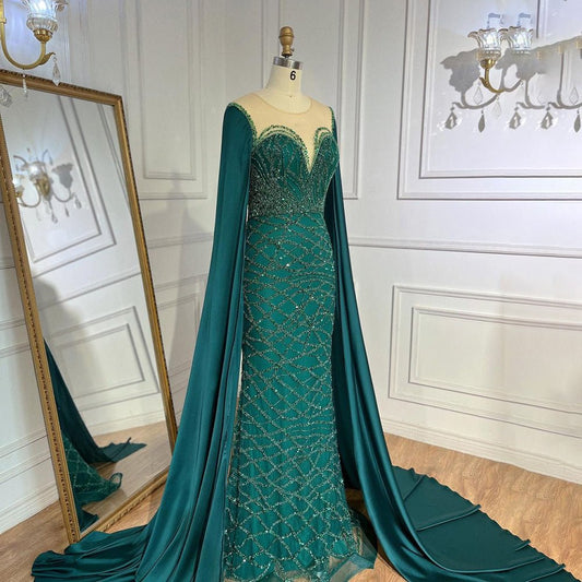 Beaded Navy Blue Mother of the Bride Dress Extra Long Cape Sleeve Evening Dresses 20054