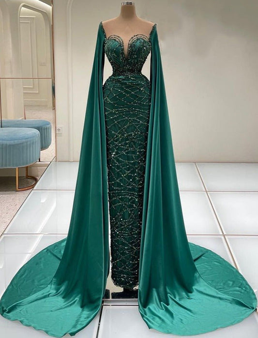 Beaded Prom Dressses Watteau Train Cape Pageant Evening Dress 20002