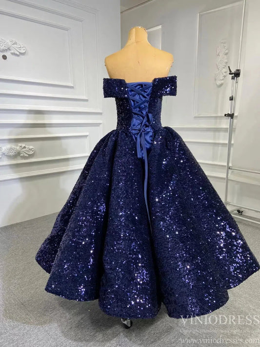 Tea Length Shimmering Sequin Prom Dresses Couture Ball Gowns FD1281B viniodress