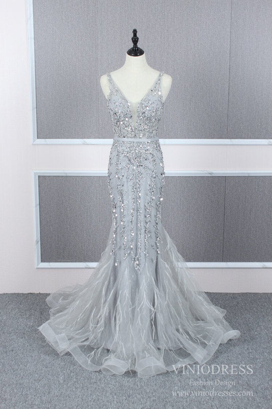 Tulle Beaded Formal Evening Dress Grey Overskirt Prom Dress FD2376