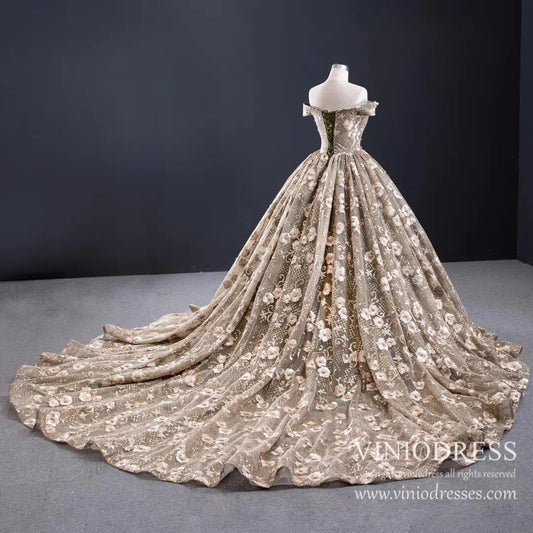 Vintage 3D Floral Sweet 16 Dress Off the Shoulder Quinceanera Dresses FD1998 viniodress