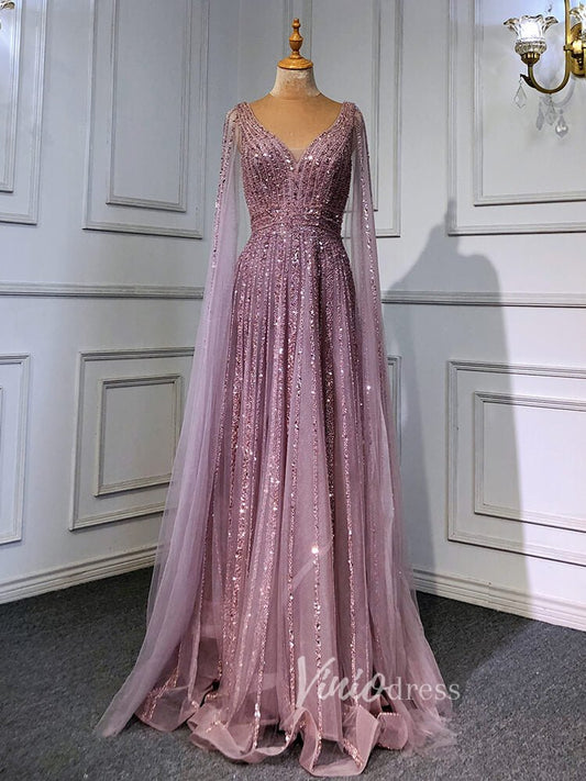 Beaded V-neck Prom Dresses Cape Sleeve Pageant Gowns 20017