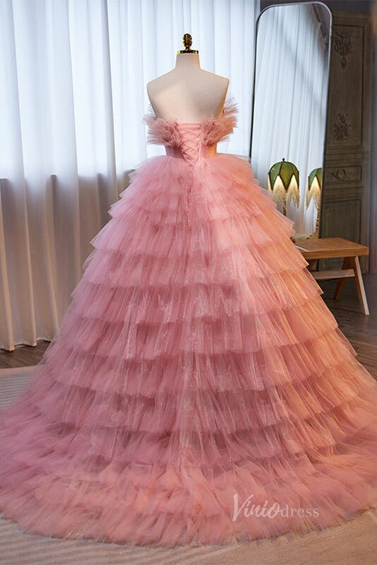 Pink Ruffled Tiered Quinceanera Dresses Strapless Gorgeous Prom Dresses SU051
