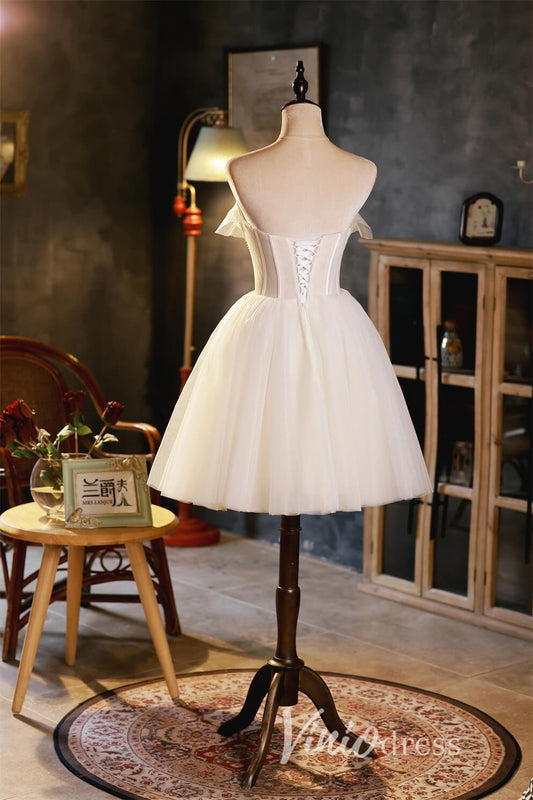 Backless Tulle Homecoming Dresses V-neck Short Graduation Dress SD1456