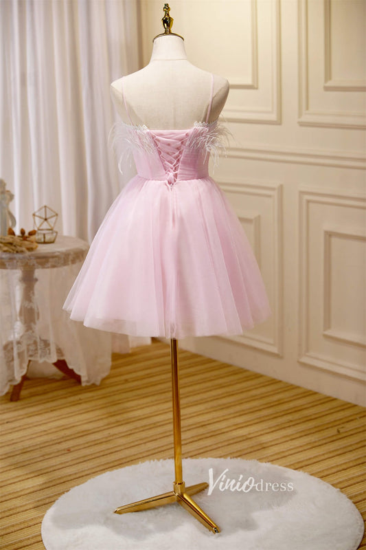 Cute Pink Tulle Hoco Dresses Spaghetti Strap Graduation Dresses SD1534