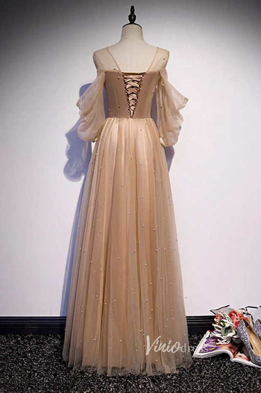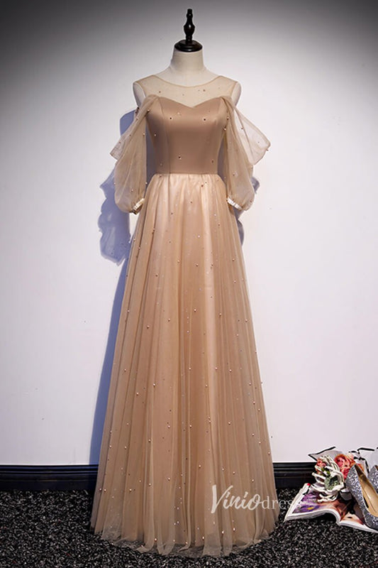 A-line Gold Prom Dress Sparkly Long Pageant Dress 222168