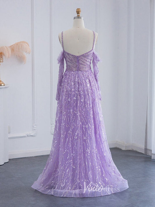 Lavender Shimmer Lace Prom Dresses Spaghetti Strap Evening Dress 20079