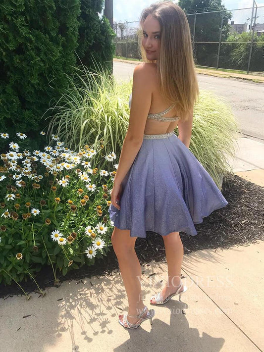 Double Strap Periwinkle Homecoming Dresses Beaded Bodice SD1270