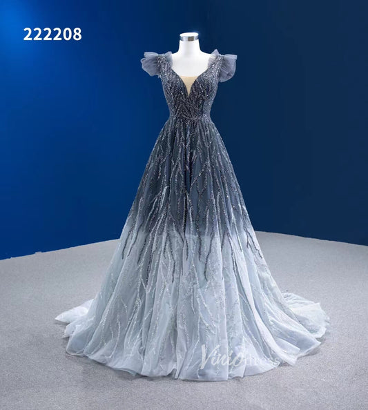 Gradient Grey Prom Dress Beaded V-neck Pageant Dress 222208