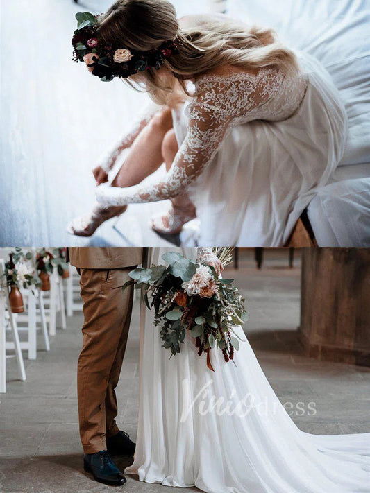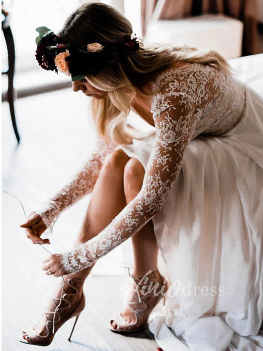 Backless Sheath Lace Boho Wedding Dress with Long Bell Sleeves VW1087