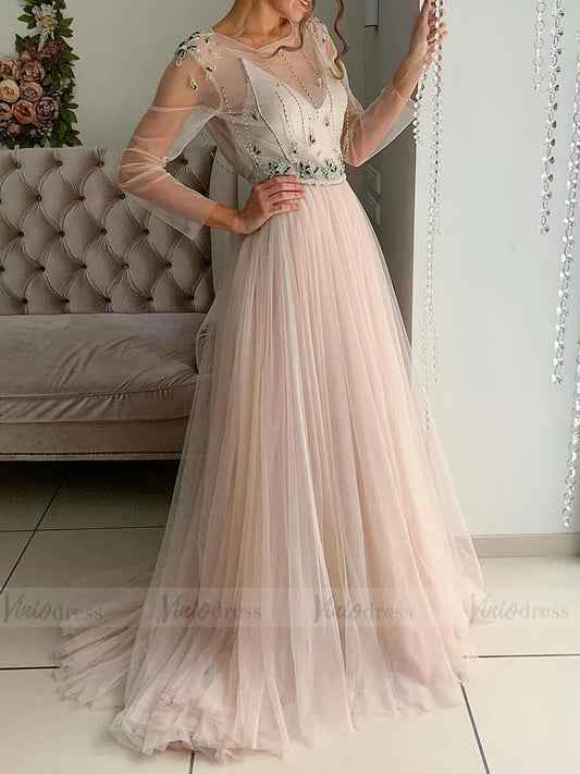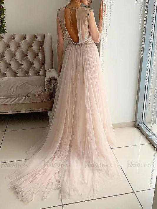 3D Floral Tulle Wedding Dress with Deep V-Neck and Sheer Back – VW2539