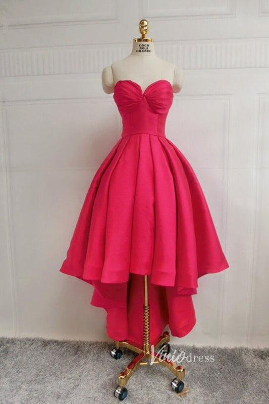 Strapless Satin High Low Prom Dresses with Pockets SD1389