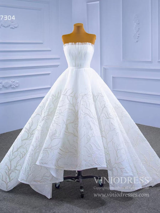 Strapless Tulle High Low Wedding Dresses Lace Appliqued 67304